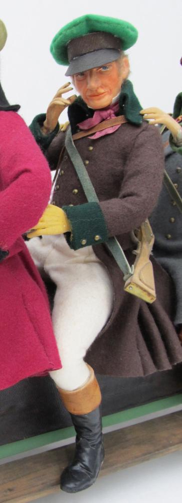 Jäger mit grüner Haube und braunem Jagdfrack; dritte Reihe von vorne.