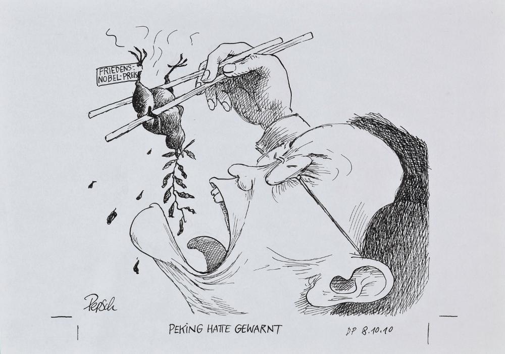 li. unten sign.: "Pepsch" unten mitte bez.: "PEKING HATTE GEWARNT" re. unten dat.: "DP 8.10.10"