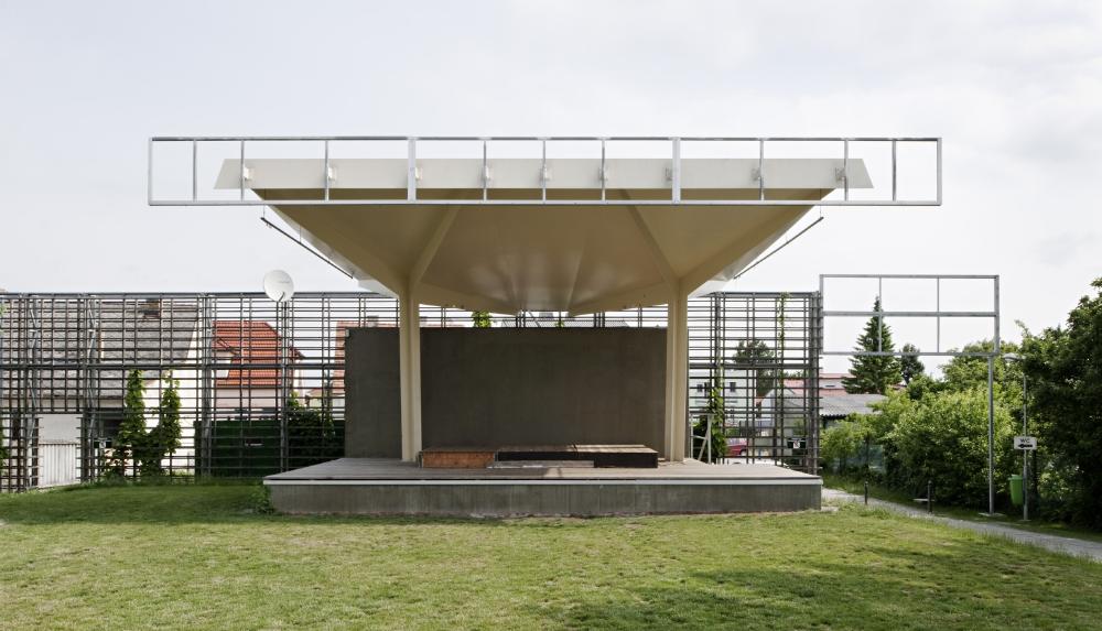 "fest (&) wiese" nennen die Architekten ihre Gestaltung mit einer neuen überdachten Bühne und dauerhaften Ständen. Damit bringen sie ihre Absicht zum Ausdruck, die unterschiedlichen Funktionen der Wiese zu einer benutzerfreundlichen Synthese zu bringen, in der die Architektur vielseitig nutzbar ist.