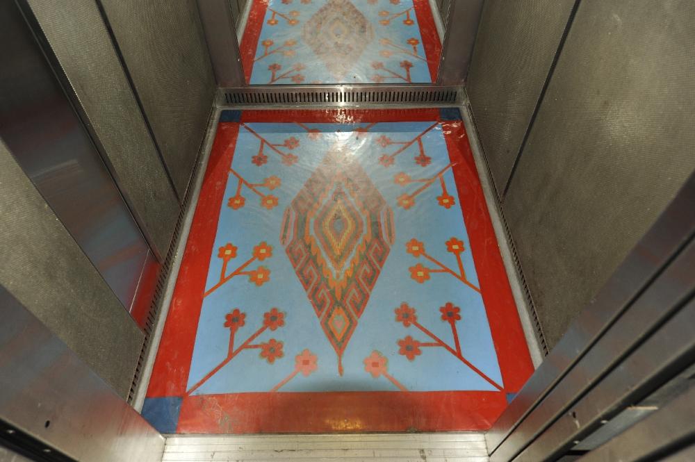 Die Arbeit ist als Reaktion auf die spezielle räumliche Situation von Liften konzipiert. Vier Bildteppiche wurden in den Liften der Abteilung Kultur und Wissenschaft (Haus 1 und 2) im Regierungsviertel installiert. Das Wort „ELEMENTS“ im Titel definiert den Lift als bauliches Grundelement – eine agile Zelle im sonst starren Baukörper. Das Erlebnis von Raum und Zeit findet hier im Rahmen äußerster Reduktion statt, was zur Konzentration auf die eigene Person (einziges signifikantes Einrichtungsobjekt ist daher oft ein Spiegel) oder, bei gleichzeitiger Benutzung durch mehrere Personen, zum unmittelbaren Erlebnis von bedrängter persönlicher Aura führt. Um die verschiedenen Komponenten dieser Form von „Selbsterfahrung“ ins Blickfeld zu rücken und sie als spezifische Qualität zu nützen, findet eine Objektintervention mittels sogenannter „PLASTICS“ statt. Raum- und Materialsprache formulieren dabei eine Verschiebung von Sehgewohnheiten und Wertvorstellungen: Plastikteppiche werden begehbare Originale der Malerei, während man im „sagenhaften Schwebezustand“ zwischen kulturellen Ordnungssystemen verschiedene Höhen und Tiefen eigener Seinszustände erfährt. Unterschiedliche Motive messen den Grad der Identifizierung.
