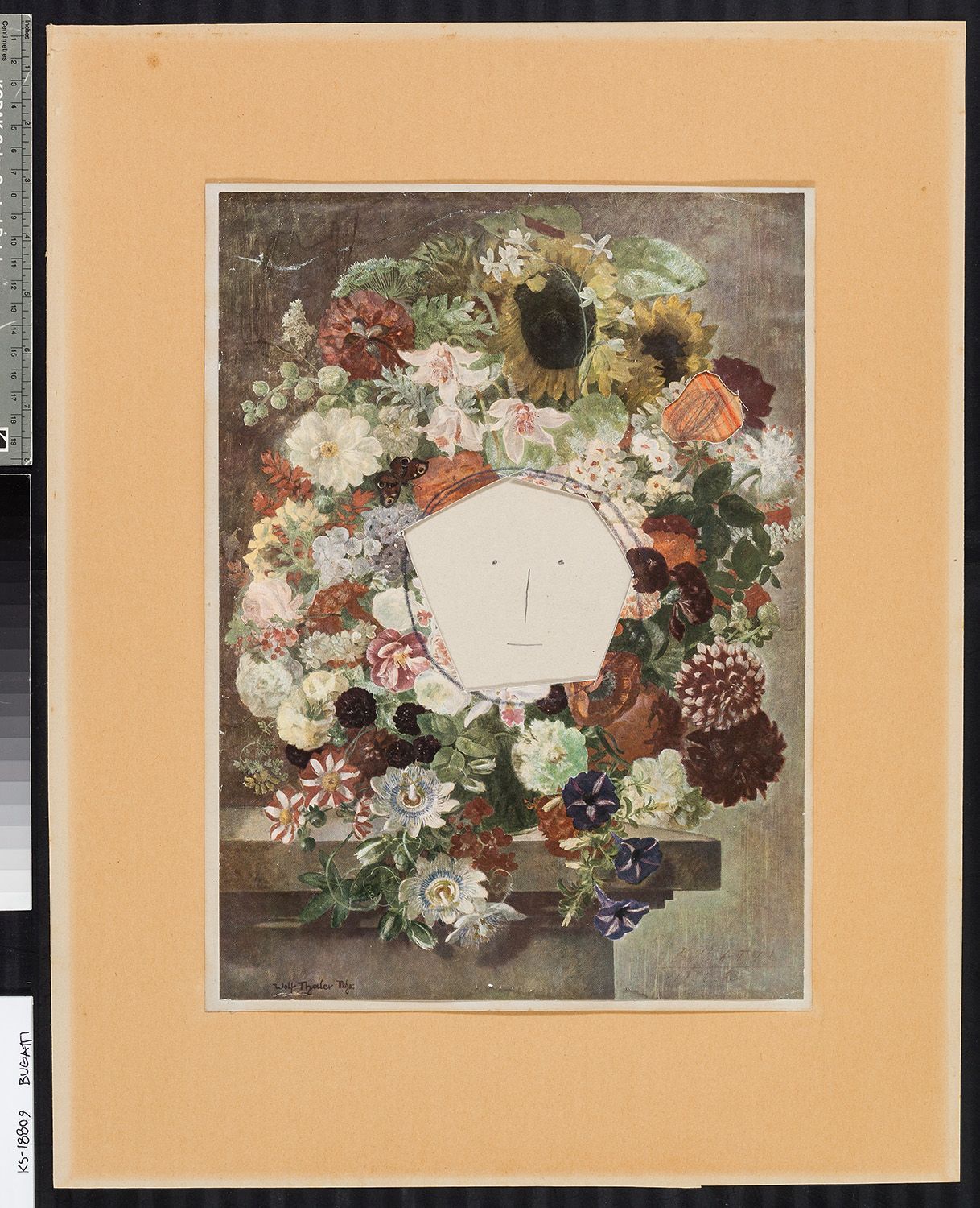 Collage, bedrucktes Papier, Karton, Bleistift (Graphit), Farbstift