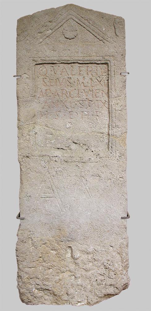 Q(uintus) Valerius / Seius mil(es) l(egionis) XV / Ap(ollinaris) Arci(tectus) Vien(na) / an(norum) XL sti(pendiorum) IX / h(ic) s(itus) e(st) h(eres) p(osuit)
