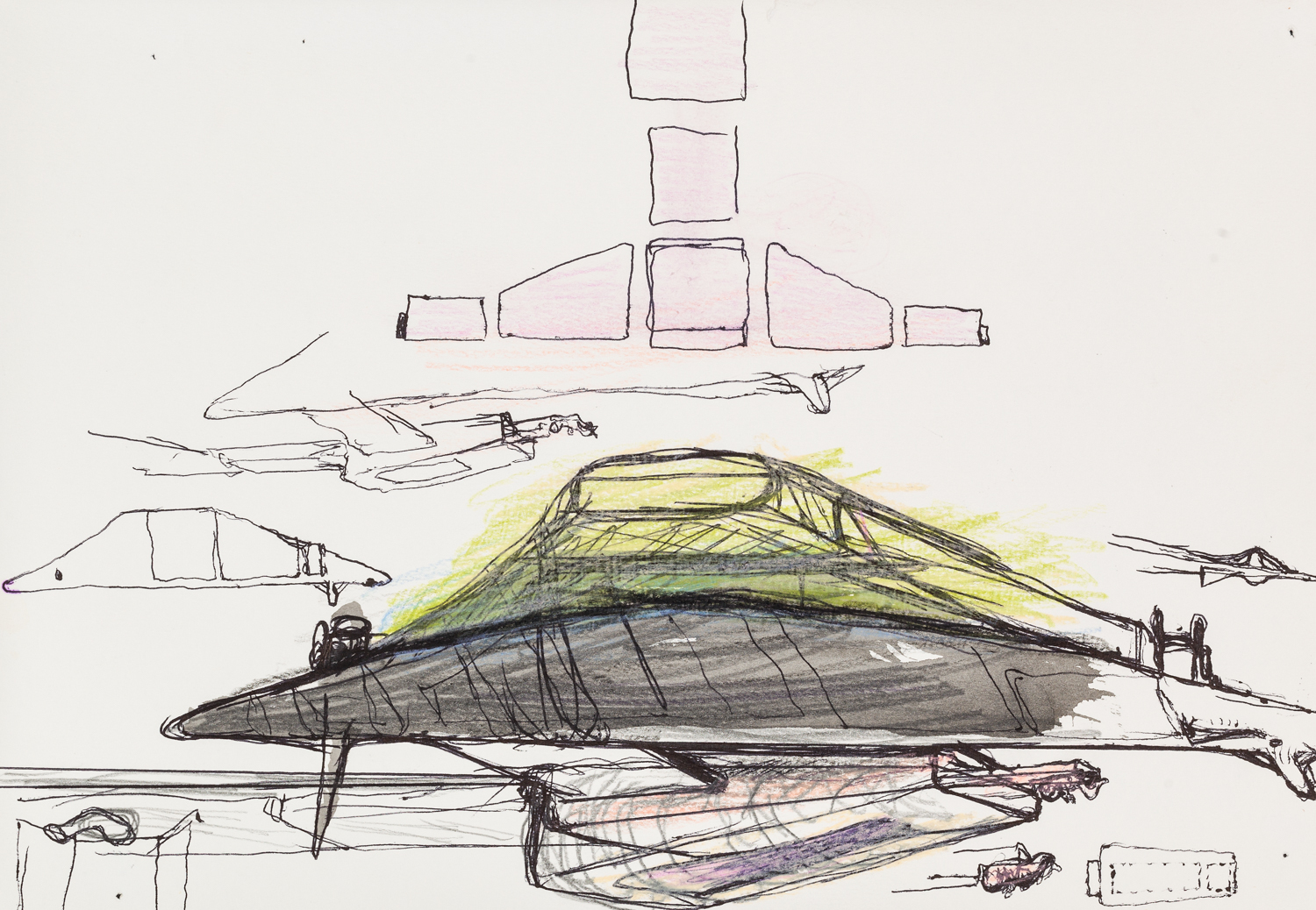 Kugelschreiber, Graphit, Farbstift auf Papier