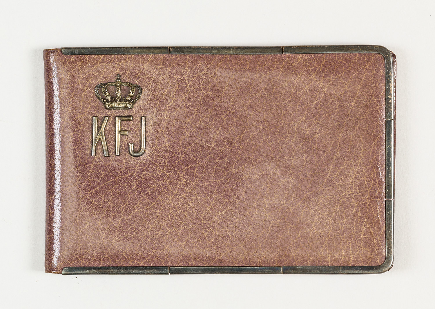 Mappe mit zwei zugehörigen Notizheften und zugehörigem Bleistift. Violettes Leder und silberne Beschläge und Montierungen. Notizhefte mit Goldschnitt und Einbänden aus violettem Seidenmoireérips. Vermutlich ein Werbegeschenk der 1910 gegründeten Nestor Gianaclis Zigarettenfabrik in Cairo und Frankurt am Main.