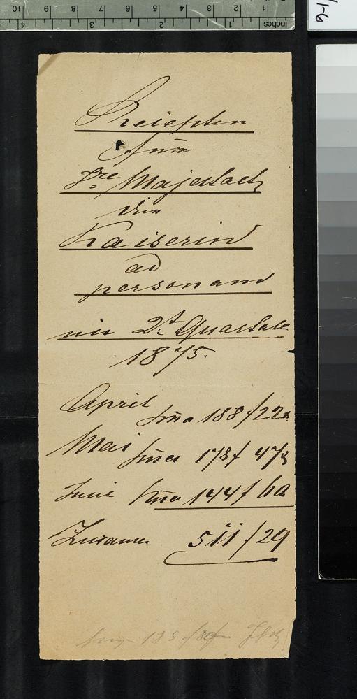 Kaiserin Elisabeth - Rechnung für kosmetische Produkte im Zeitraum von April bis Juni 1875