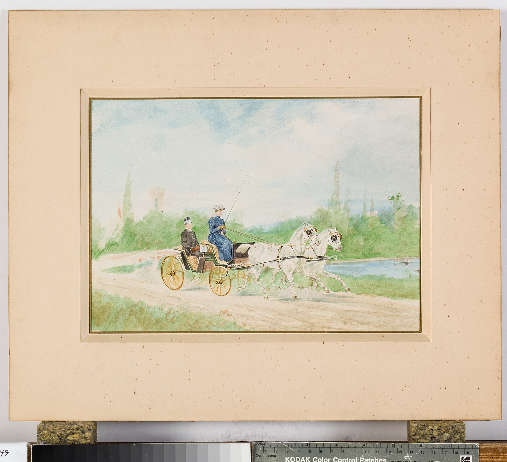 Erzherzogin Marie Valerie - Darstellung der Erzherzogin auf dem Kutschbock mit Kutscher in zweispänniger Kutsche, Aquarell, signiert und datiert "H.G. Wilda 1890"