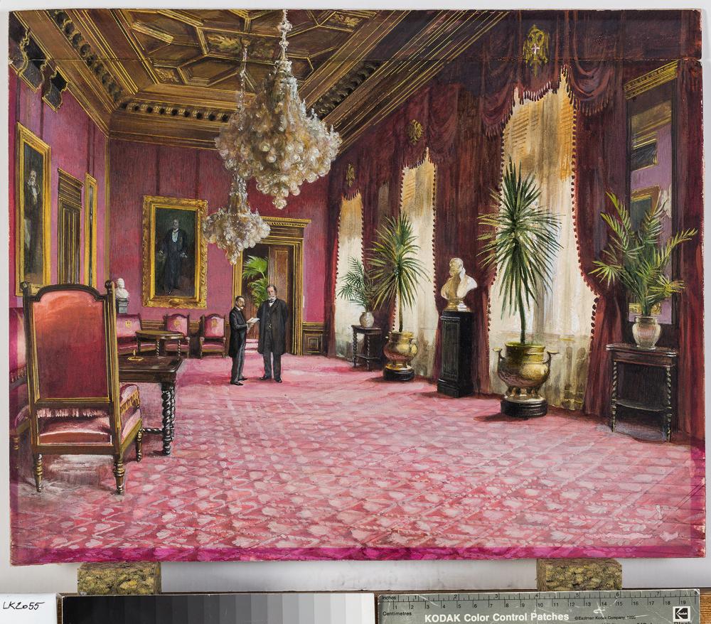 Karl Lueger - Darstellung des Bürgermeisters mit einem Mitarbeiter in einem Salon des Wiener Rathauses, Aquarell