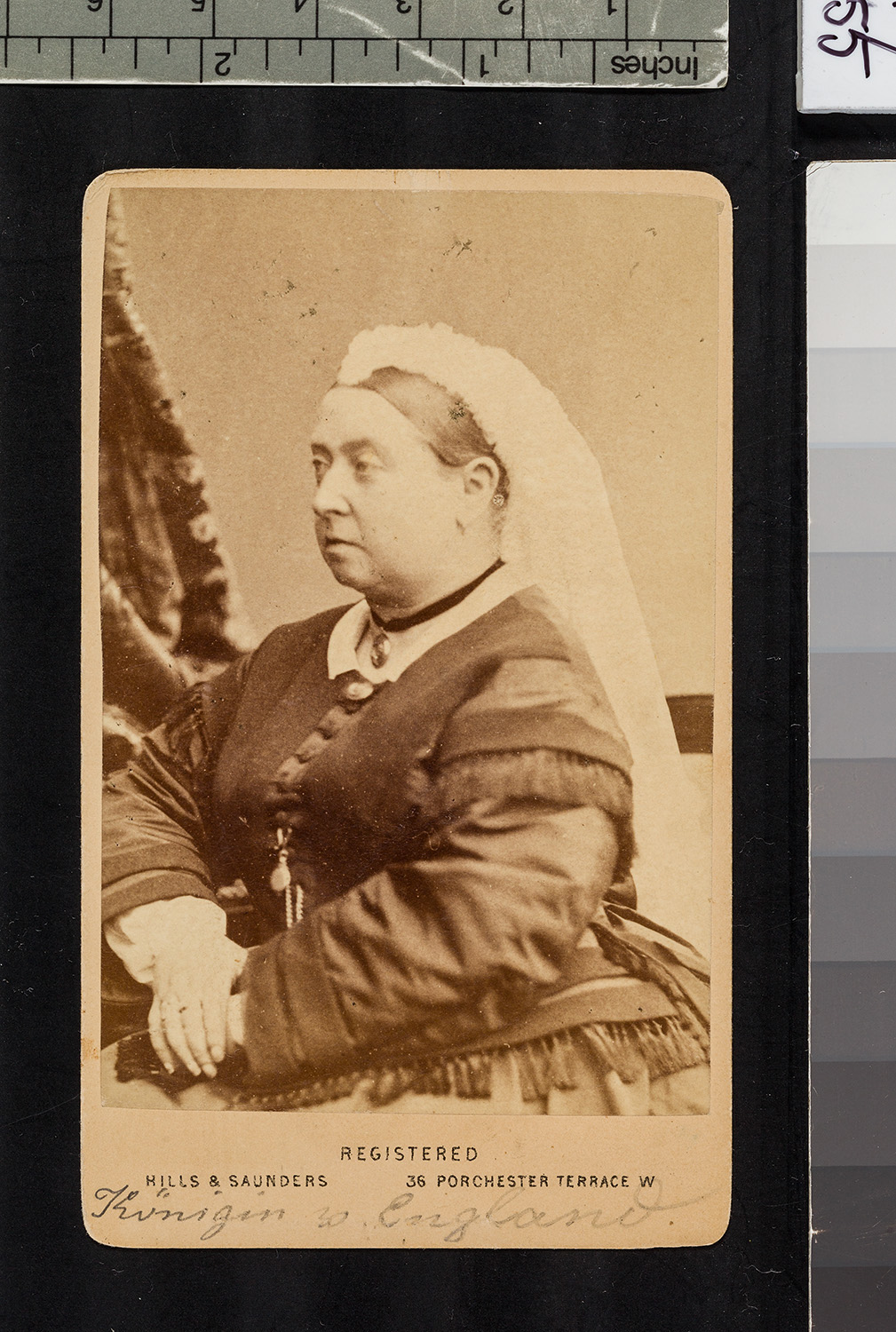 Österreichisches Kaiserhaus - Fotosammlung. Fotografie der Königin, sitzend im Profil, mit weißem Schleier