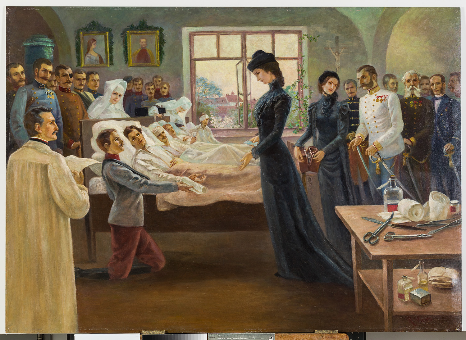 Gemälde - Kaiserin Elisabeth beim Besuch eines Militär-Spitals