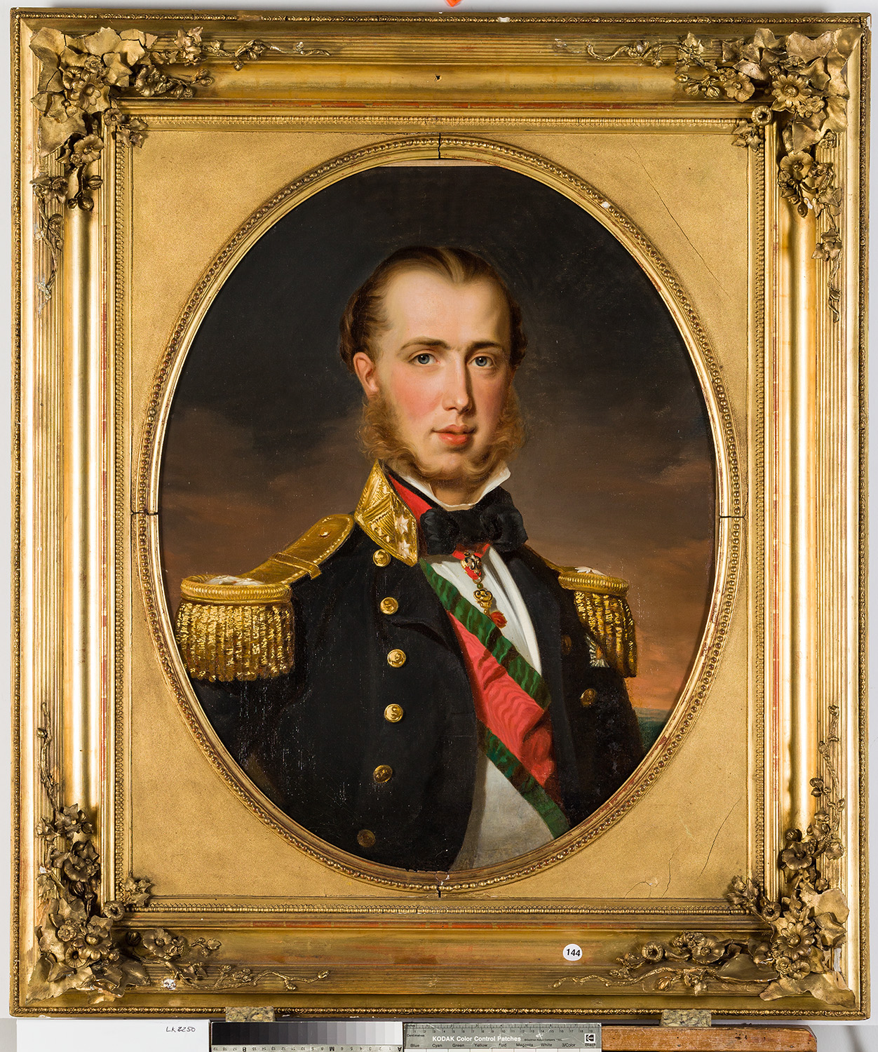 Erzherzog Ferdinand Max - Kaiser Maximilian von Mexiko, Portrait des Erzherzogs in Marineuniform, dekoriert mit dem Orden vom Goldenen Vlies und der Schärpe des St. Stephansordens. Franz Xaver Winterhalter zugeschrieben, Öl auf Leinwand, oval, gerahmt, um 1855. Hervorragendes Porträt des späteren Kaisers von Mexiko als Admiral der österreichischen Kriegsmarine.