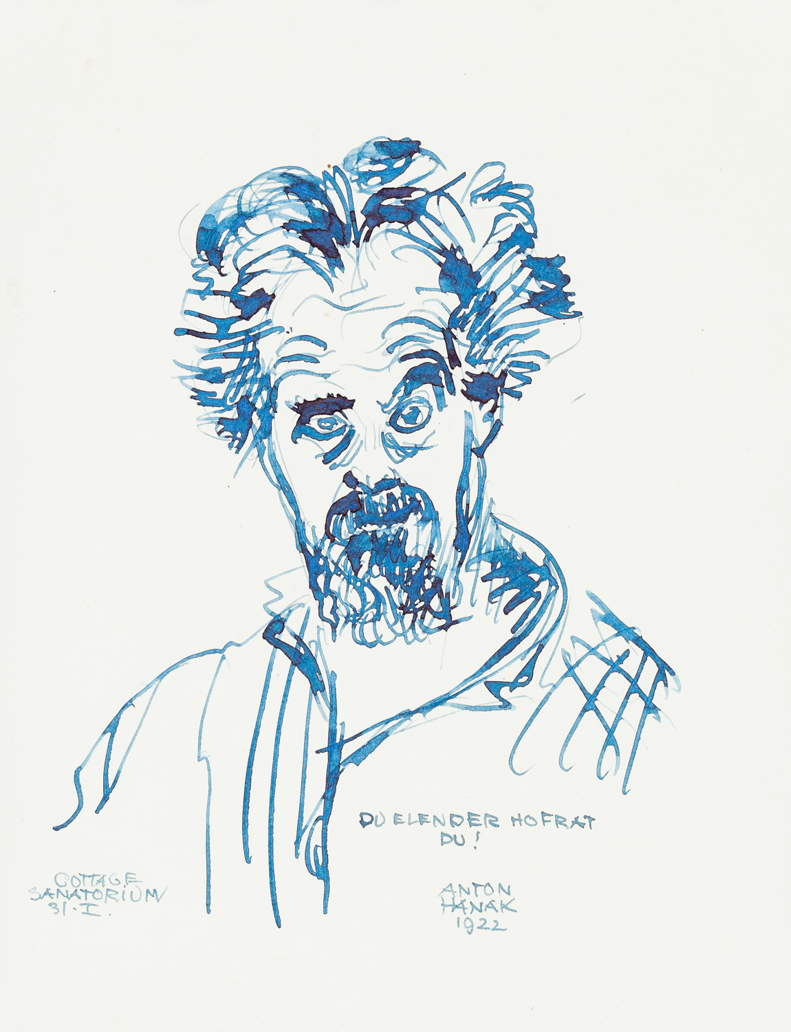 re.u.bez.,sign.u.dat.: "DU ELENDER HOFRAT DU! ANTON HANAK 1922" li.u.bez.: "COTTAGE SANATORIUM 31.I."