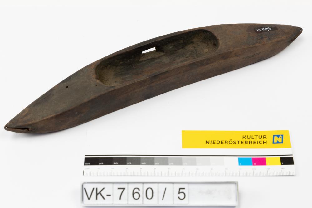 Webschiffchen mit Ausnehmung für eine Spule.