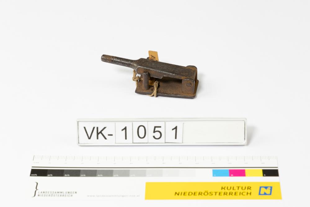 Kleine Verriegelungsvorrichtung mit Gelenk und Gewindestange.