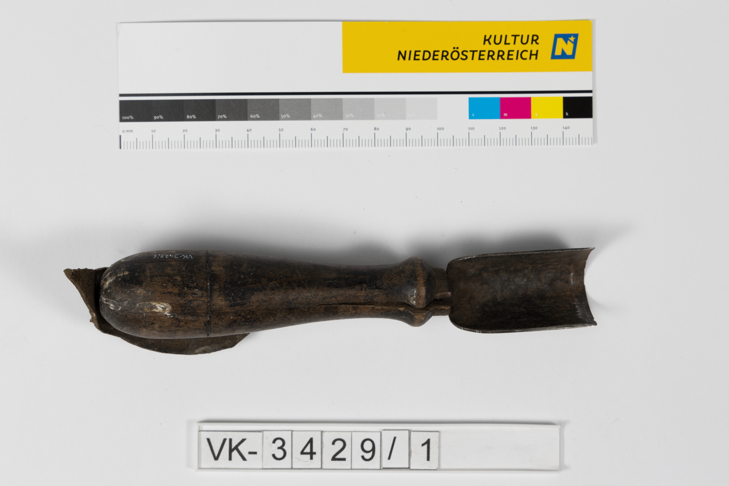 Material/TechnikHolz, Metall, Leder, gedrechselt, geschmiedet