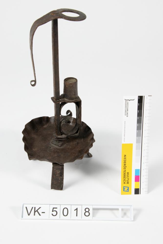 Höhenverstellbarer Kerzenständer für eine Kerze. Die Halterung kann auf dem Stiel fest geklemmt werden.
