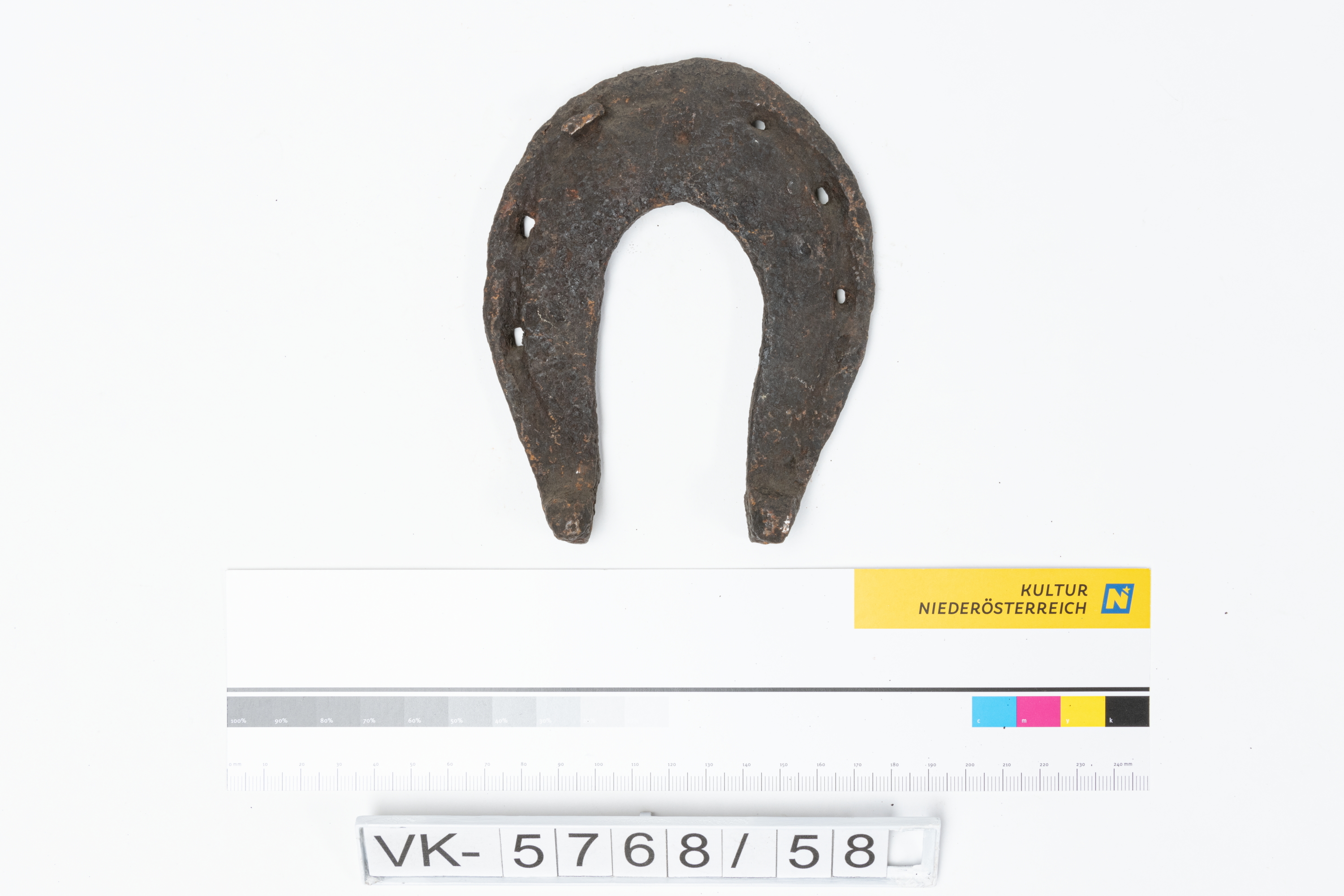 Hufeisen mit Löchern für Nägel. Laut Inventarbuch mit Schmiedezeichen.