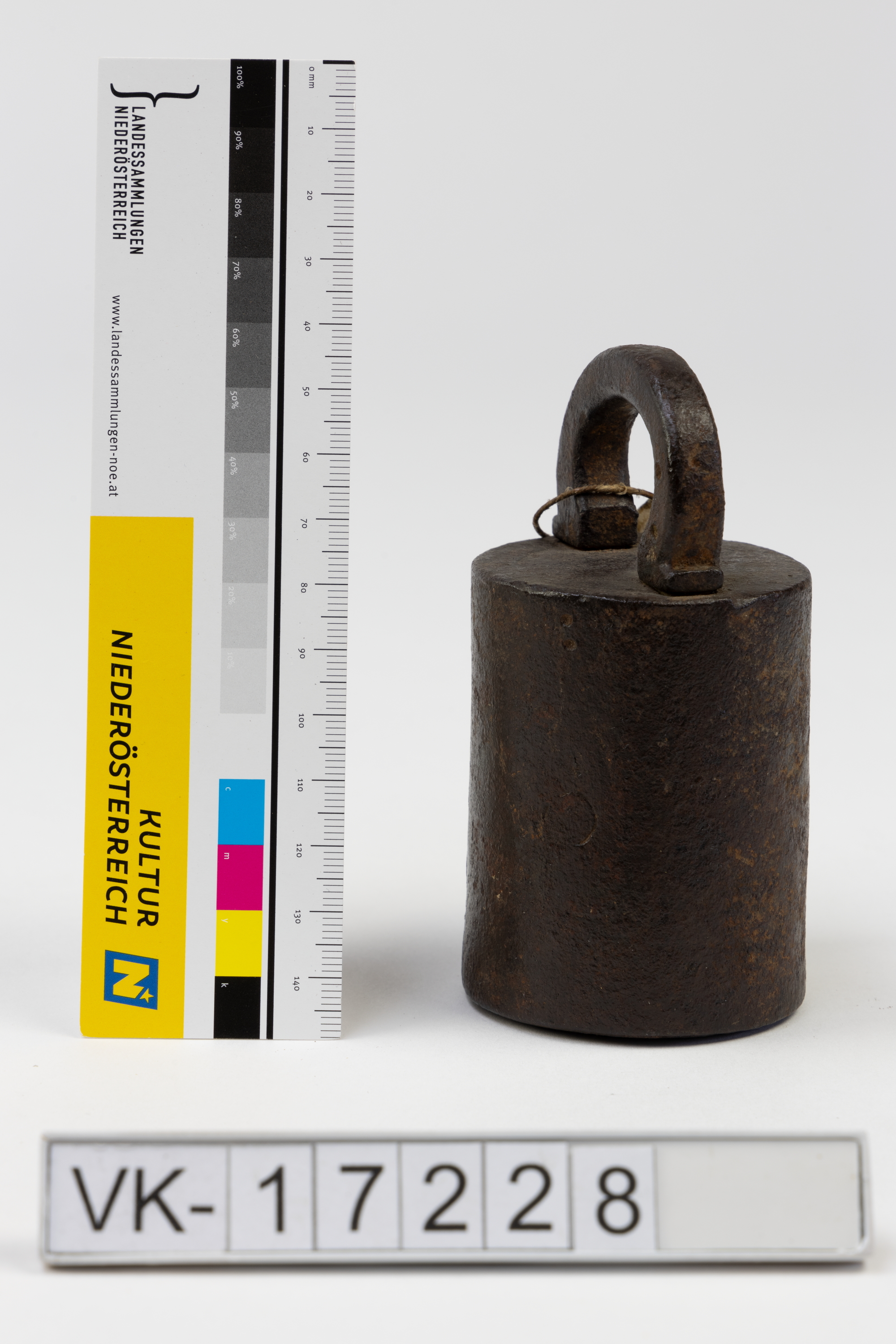 Schmiedeisernes zylindrisches Vorhängeschloss mit einem Bügel und einem Schlüsselloch.