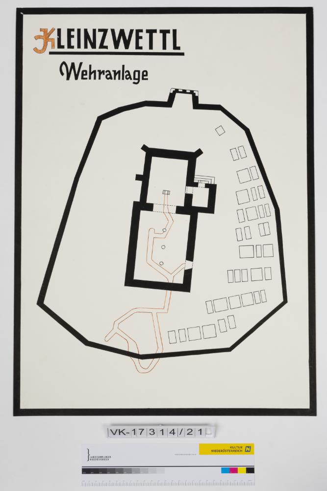 Schautafel mit Zeichnung und Text: Wehranlage Kleinzwettl.