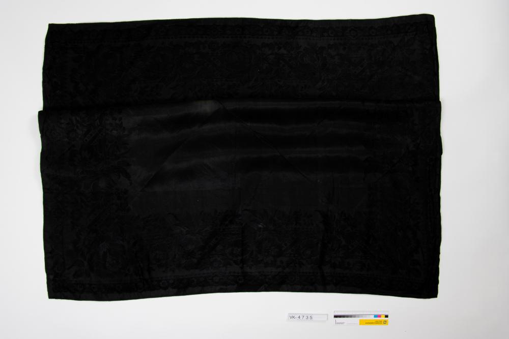 Schwarzes Schultertuch mit Blütendekor im Randbereich.