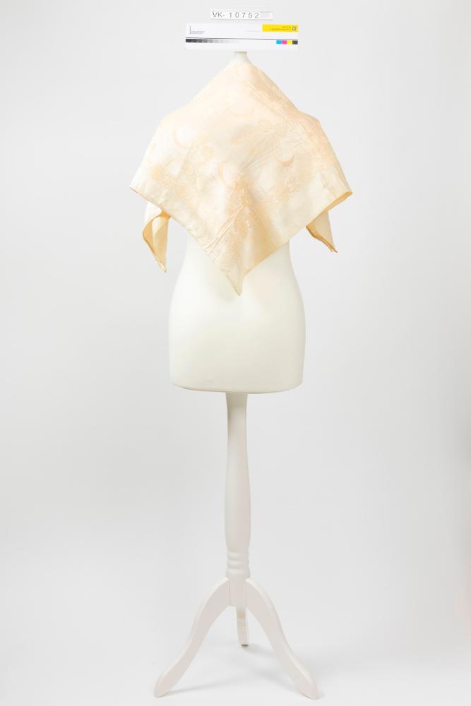 Beiges Seidentuch mit gewebtem und gesticktem floralem Muster.