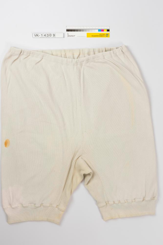 Halblange hellgraue Damenunterhose aus Baumwollstoff mit Gummizug und Bündchen.