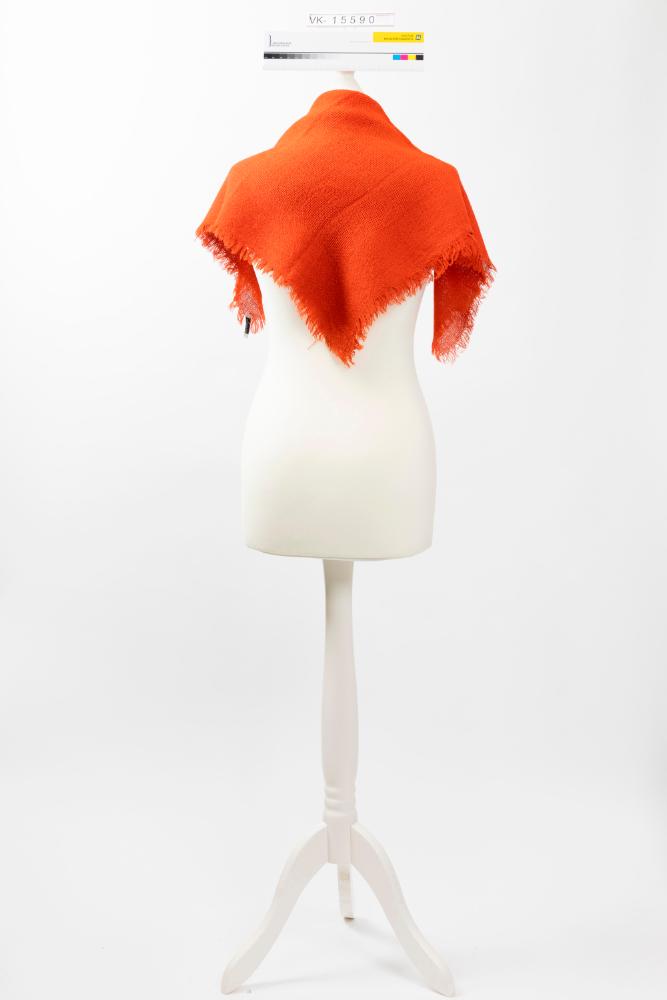 Rotes Wolltuch mit kurzen Fransen.