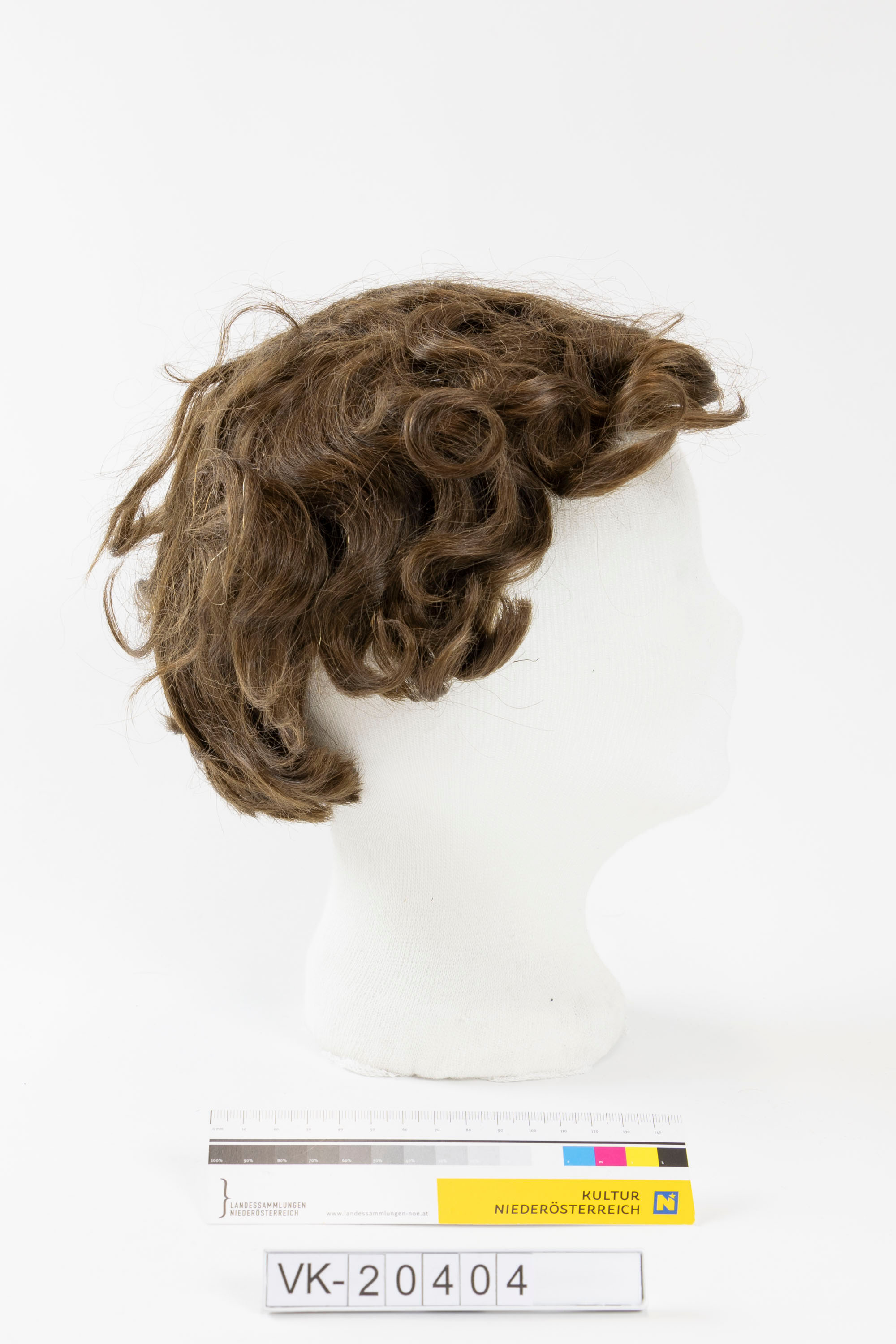 Rotbraune Damen- oder Herrenperücke mit halblanger, im Nacken etwas längerer Frisur.