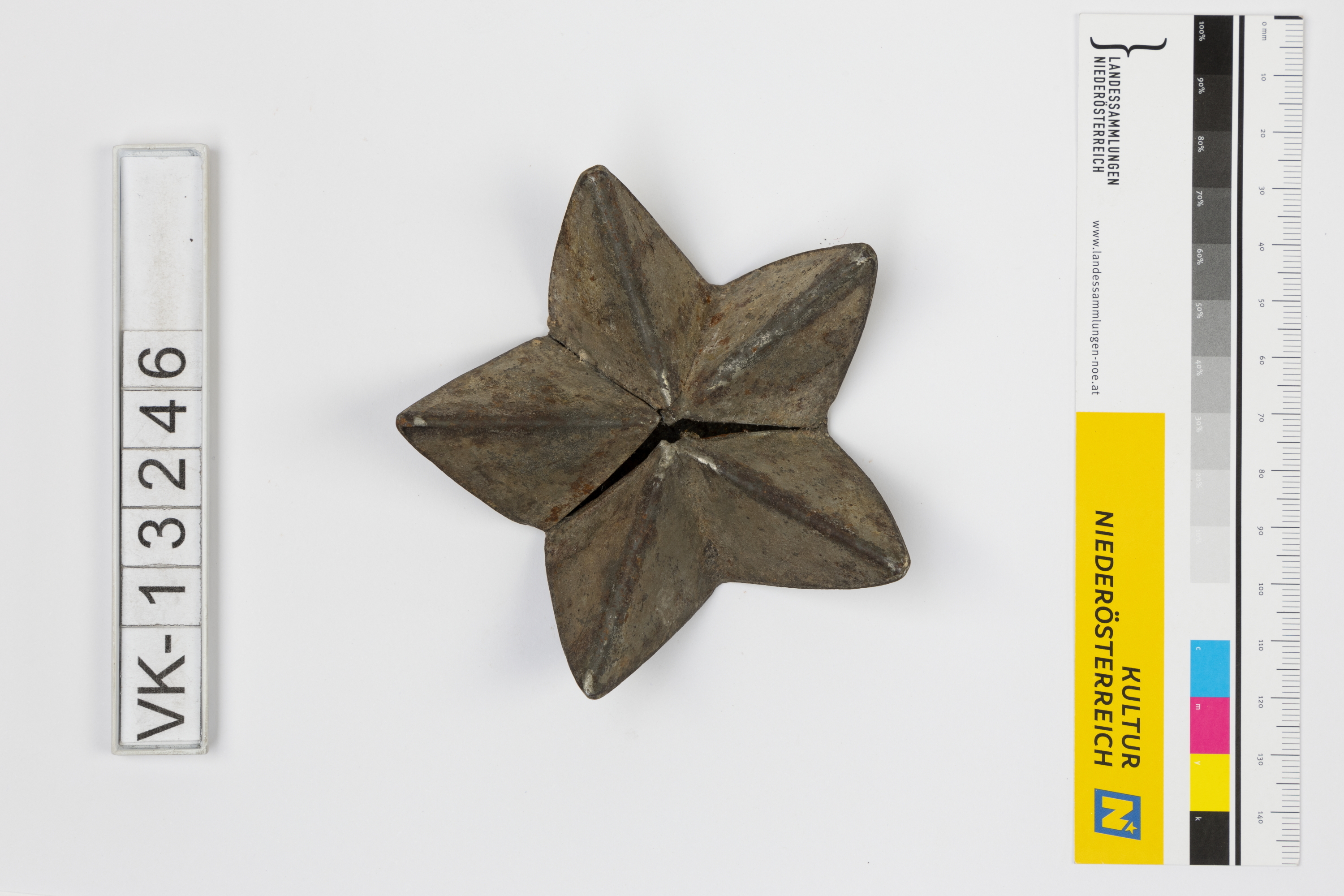 Backstern mit fünf Zacken, aus Eisenblech verlötet, für Semmeln. Das Objekt stammt laut Inventarliste aus einer Bäckereieinrichtung.