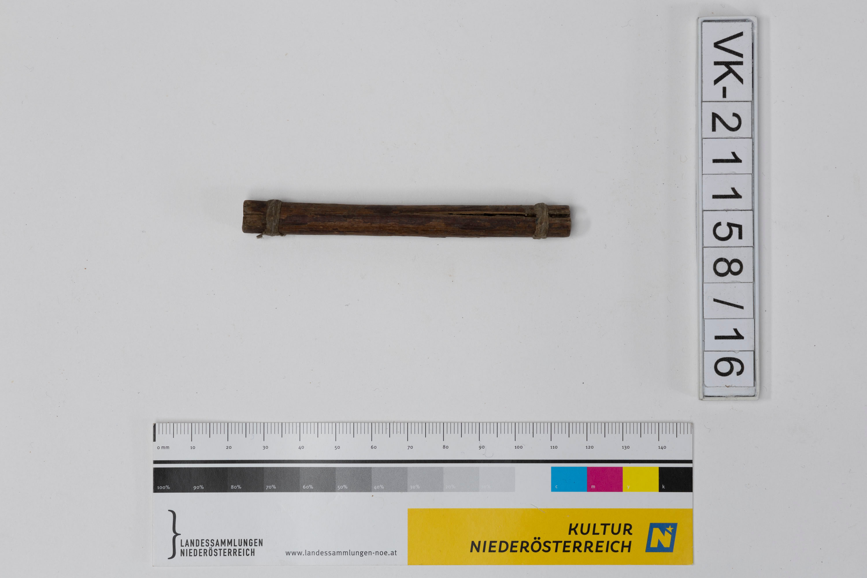 Hohles Schilfröhrchen, an beiden Enden mit Garn umwickelt.