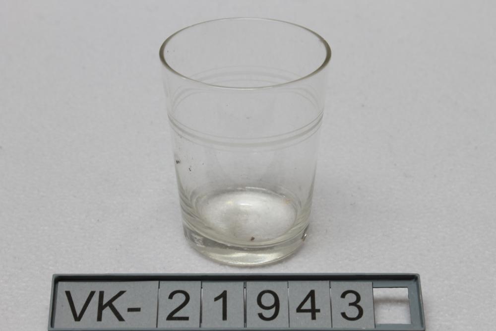 Leicht konisches Glas mit drei umlaufenden Ringen als Verzierung (geätzt).