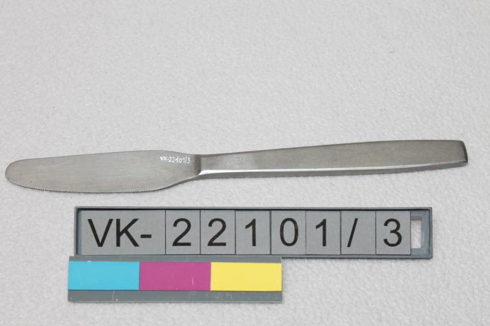 Messer mit leicht abgerundeter Klinge und geradem Griff. Das Messer ist beschriftet: "AMBOSS AUSTRIA", "ROSTFREI STAINLESS".