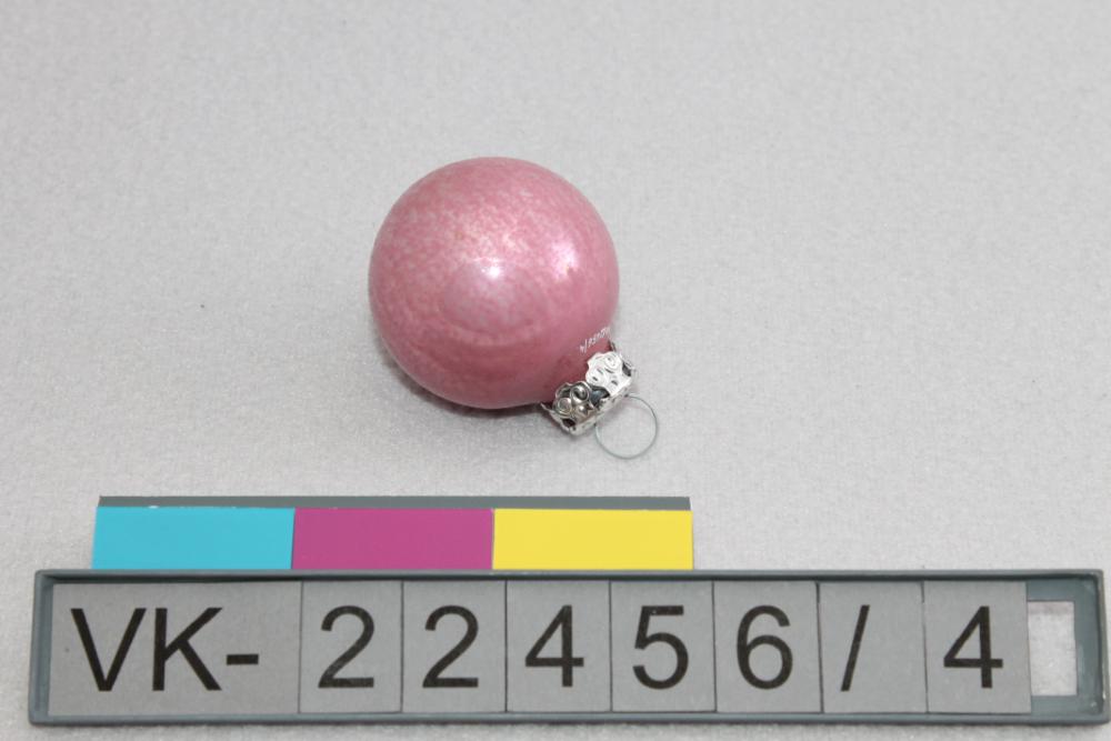 Rose Glaskugel, ornamental verzierte silberne Aufhängevorrichtung mit Prägung: "GERMANY".