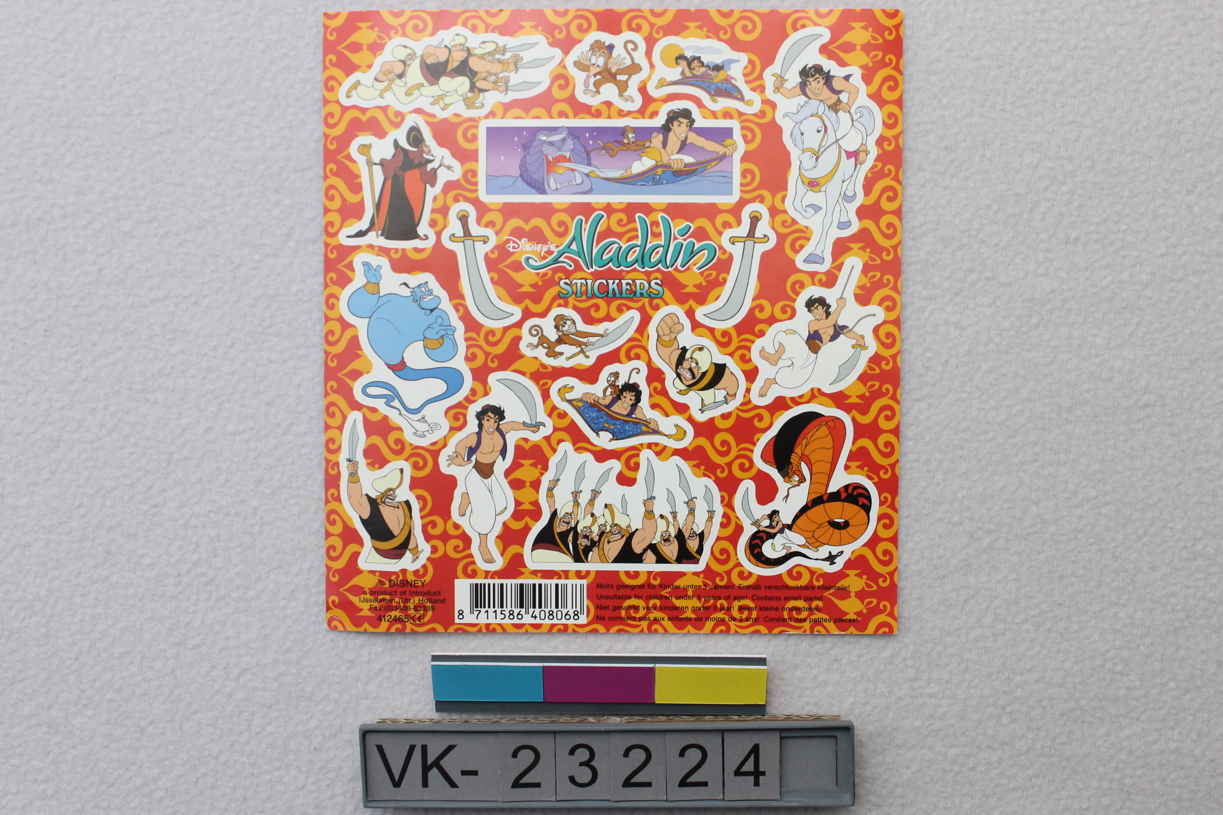 Aufklebersatz mit diversen Figurenaufklebern, Beschriftung: "Aladdin STICKERS".