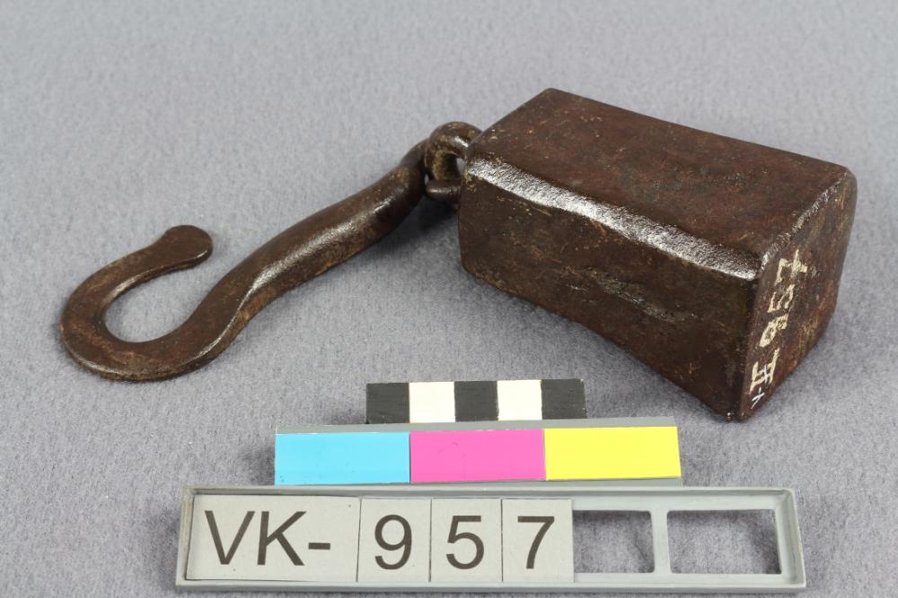Viereckiges Eisengewicht mit beweglichem Haken.