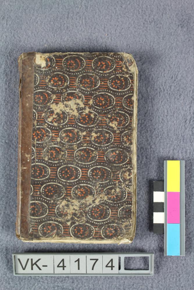 Schulbuch in einem braunen gemusterten Kartoneinband: "Lesebuch für die zweyte Klasse der Land-Schulen". Im Umschalg sind diverse Siegelreste vorhanden.