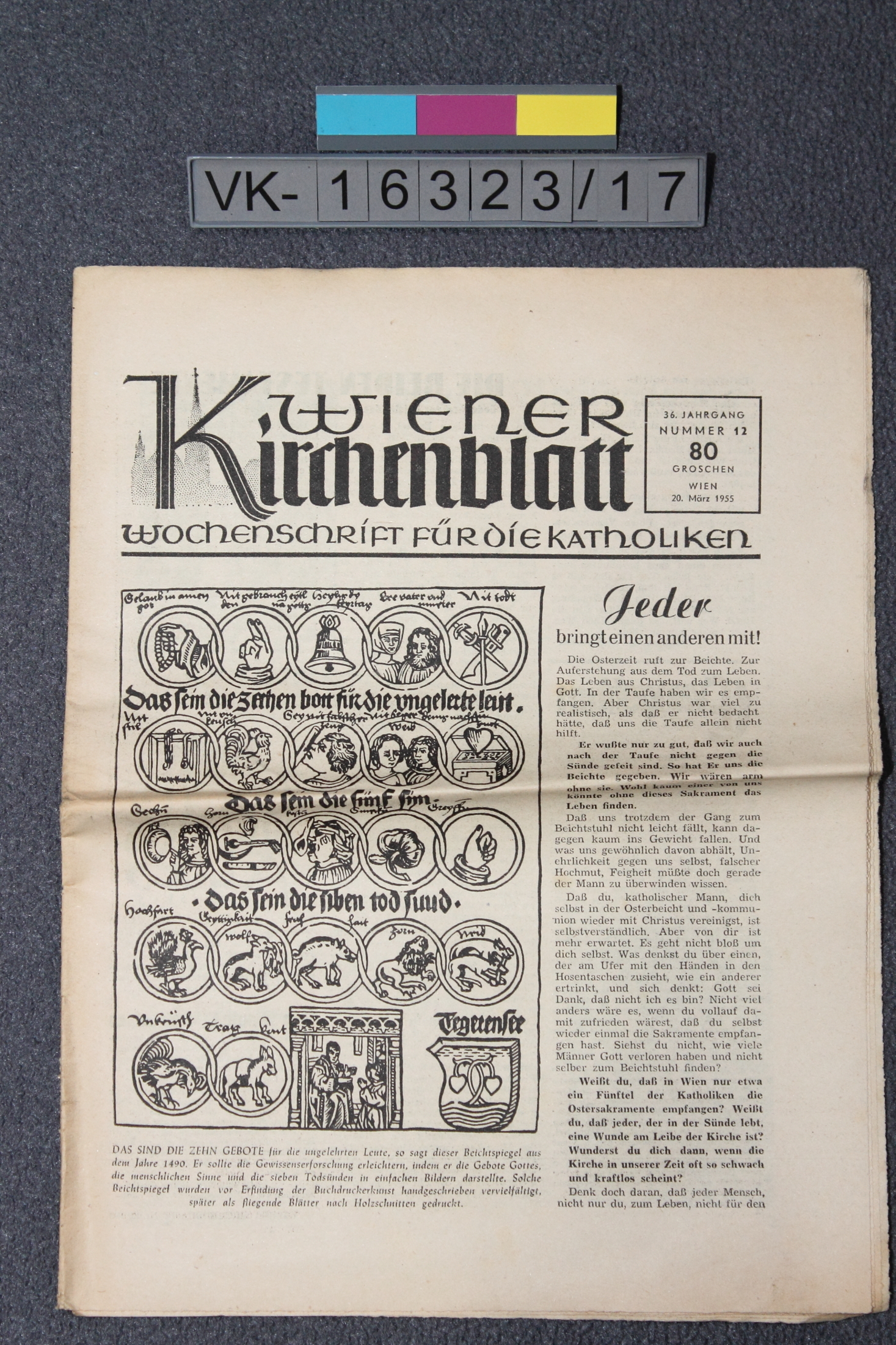Zeitung: "Wiener Kirchenblatt", 36. Jahrgang Nr. 12, mit Kinderbeilage.
