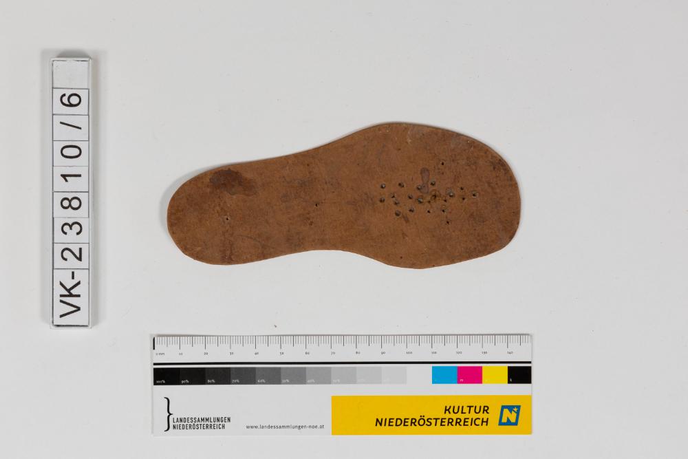 Sohlenform aus Karton mit handschriftlicher Beschriftung.