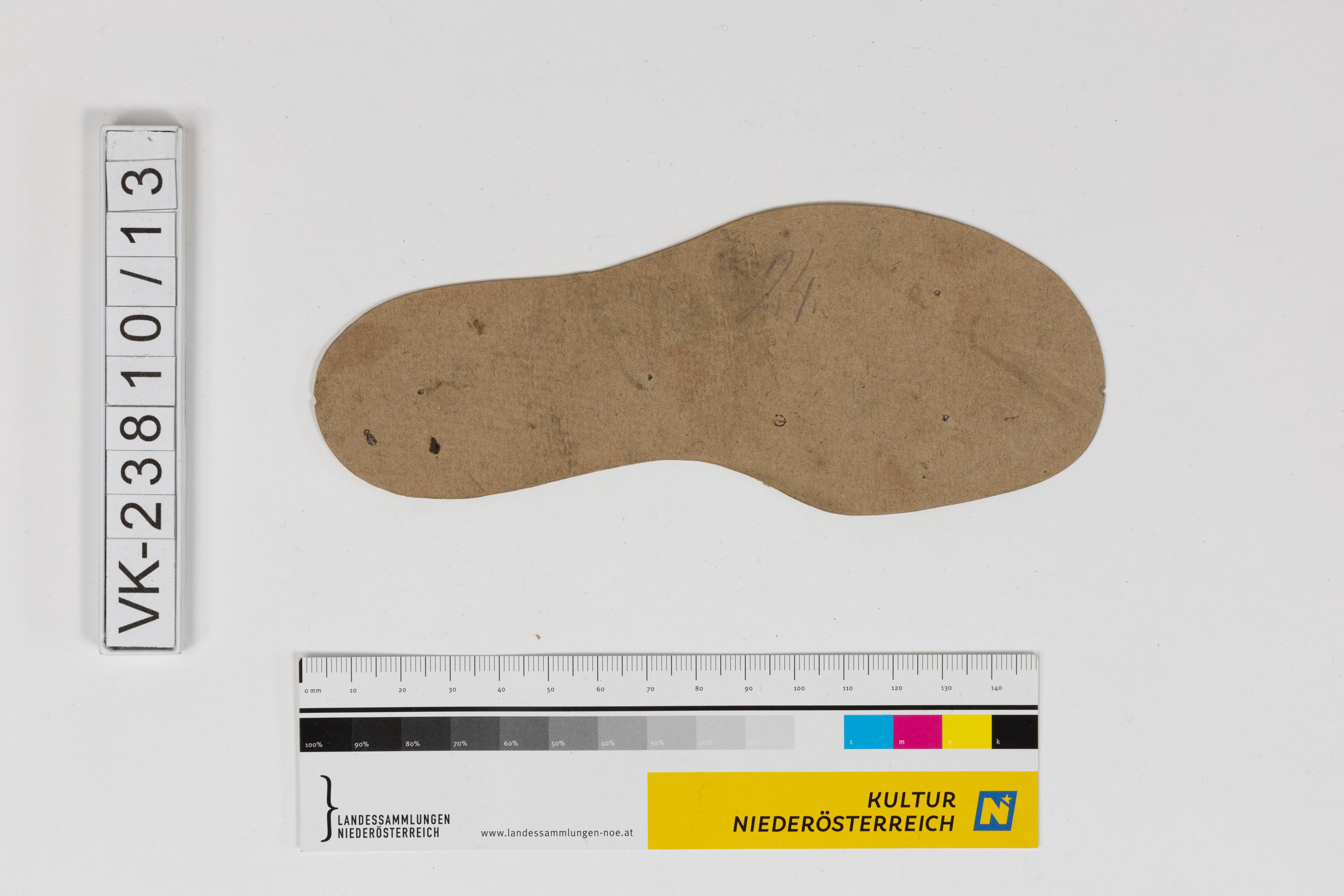 Sohlenform aus Karton mit handschriftlicher Beschriftung: "24".