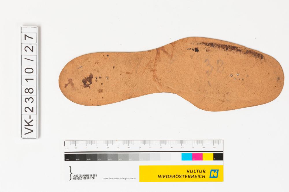 Sohlenform aus Karton mit handschriftlicher Beschriftung: "38".