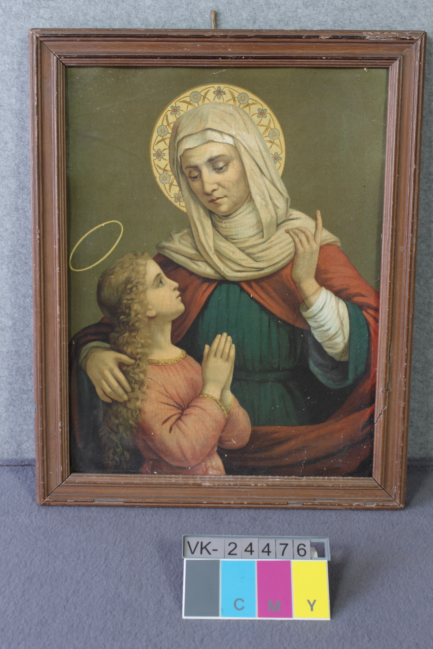 Bild in einem braunen Holzrahmen: Hl. Anna mit Maria.