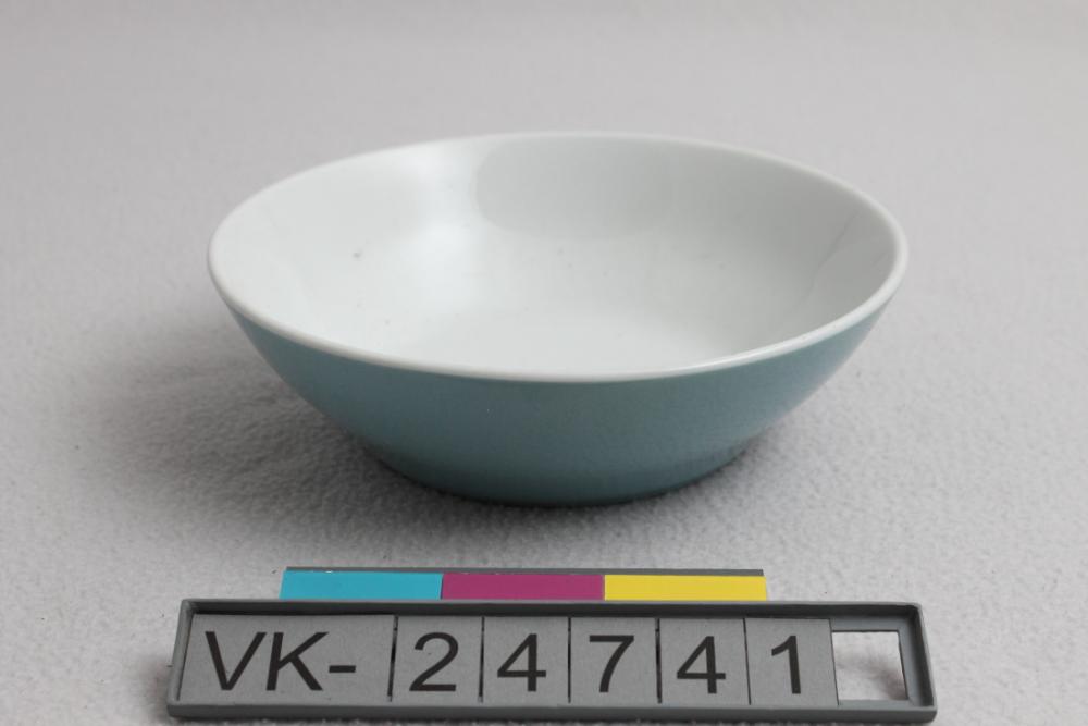 Innen weiß und außen hellblau glasierte Schüssel mit einem Markenzeichen auf dem Boden: "LILIEN PORZELLAN AUSTRIA".