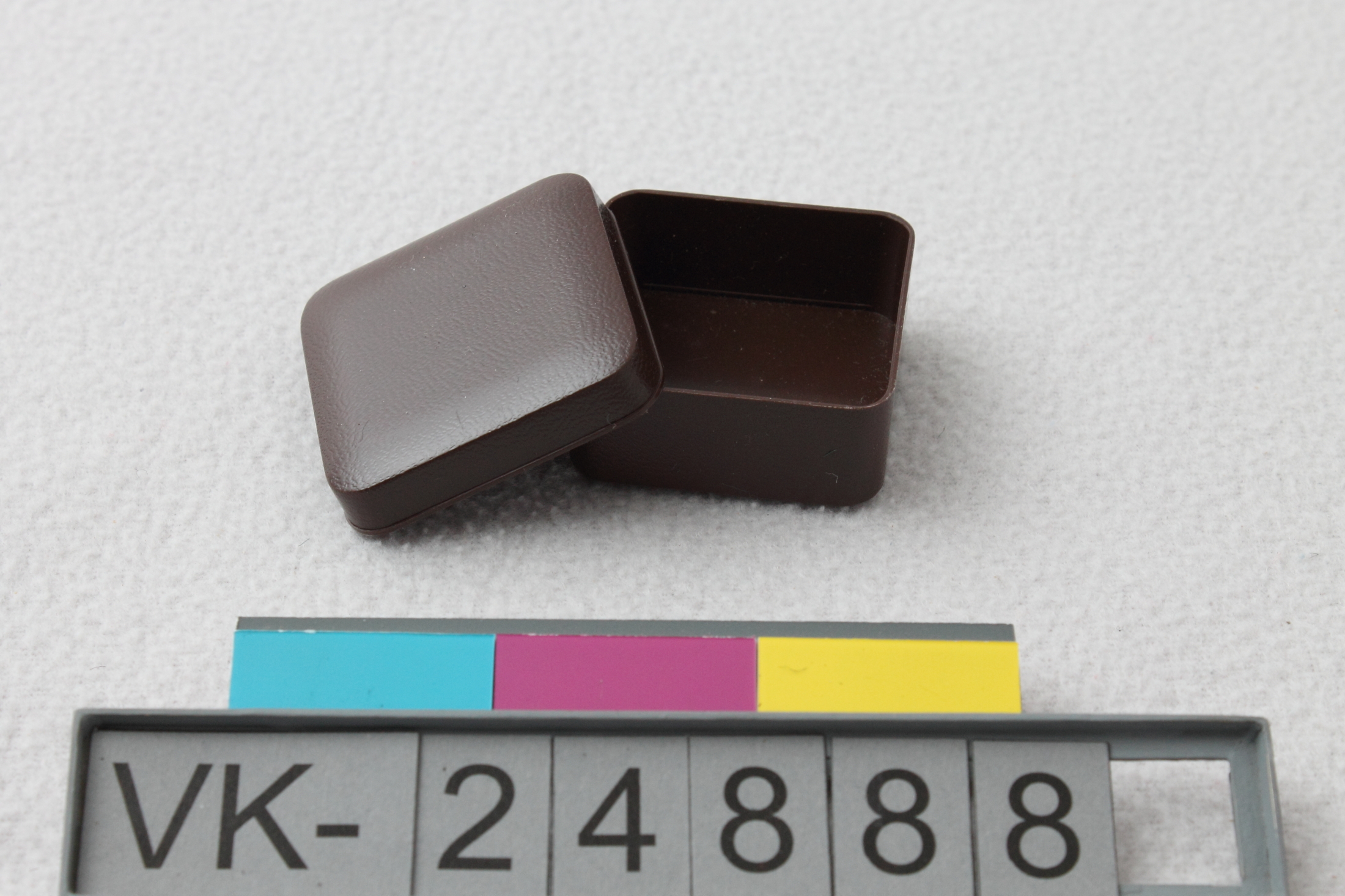 Braune Schatulle (VK-24888a) mit Deckel (VK-24888b). Das Objekt befindet sich in der Schatulle mit der Inventarnummer VK-24881.