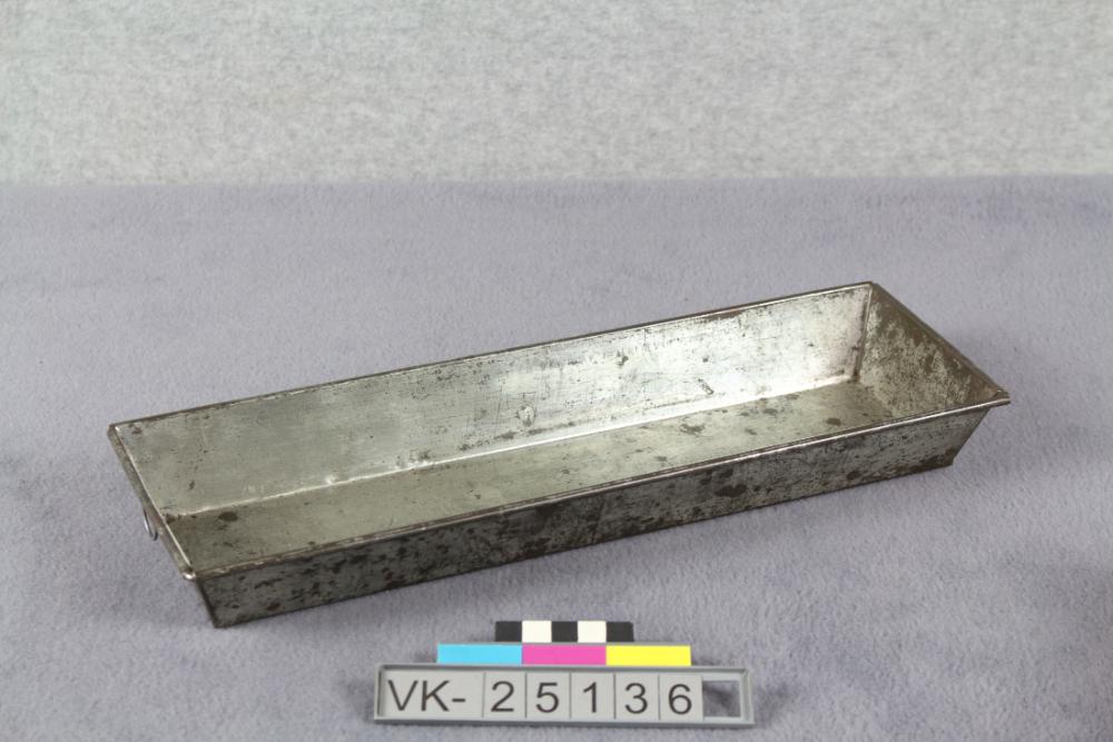 Backform aus Blech mit leicht schräger Wandung, eingerolltem Rand und einer Öse.