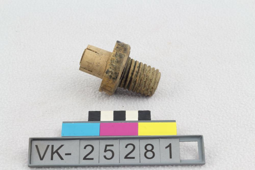 Ansatzstück: Geschlitzer kurzer (ev. abgeschnittener) Holzkonus mit Gewinde.