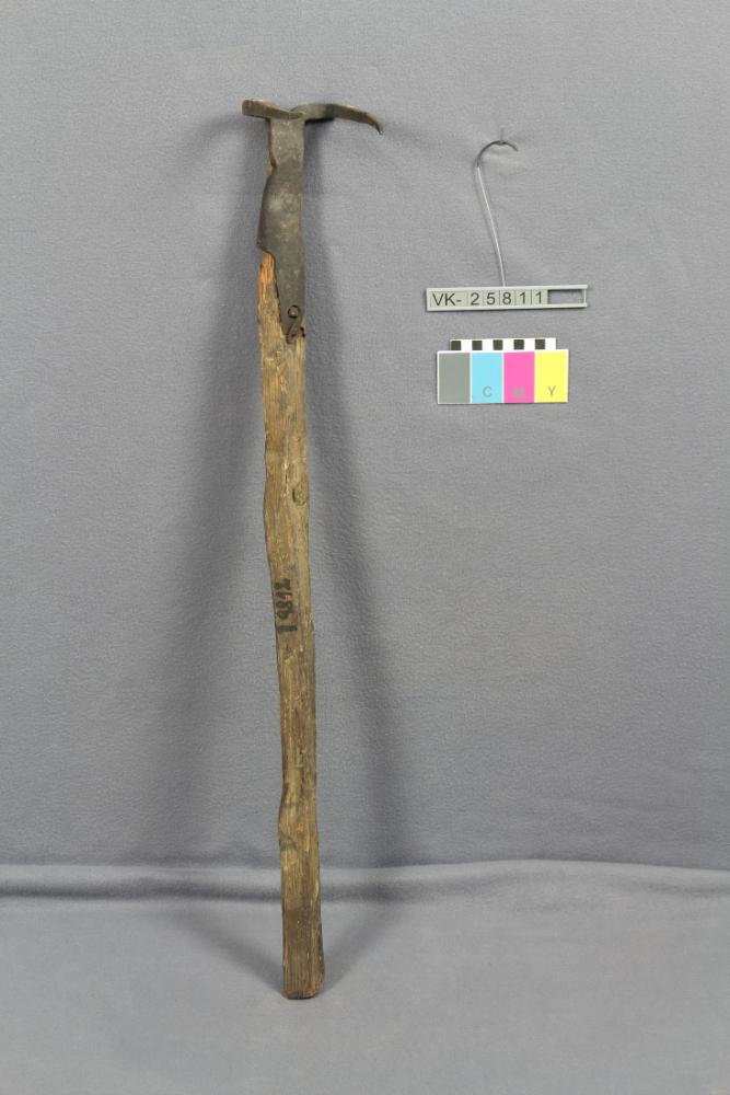 Zweizinkiger Karst an einem Holzstiel ("Mistkralle").