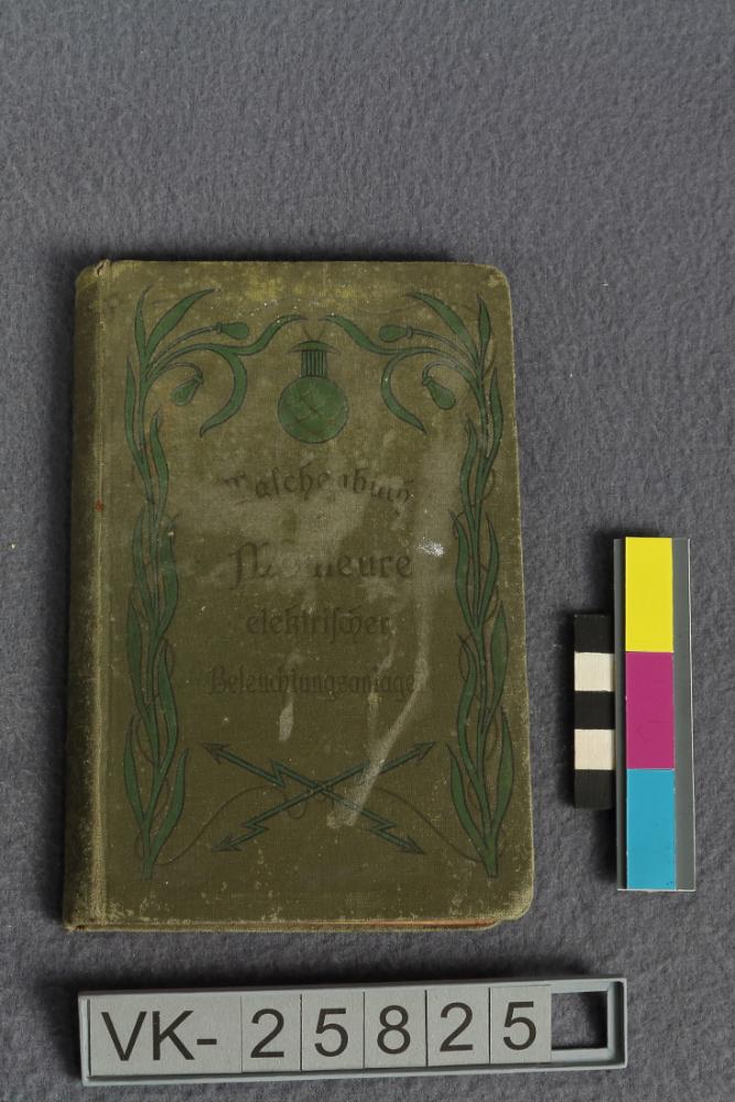 Gebundenes Handbuch "Taschenbuch für Monteure elektrischer Beleuchtungsanlagen" (215 Seiten). Das Buch enthält technische Beschreibungen mit Zeichnungen, dazu sind diverse Produktwerbungen abgedruckt.