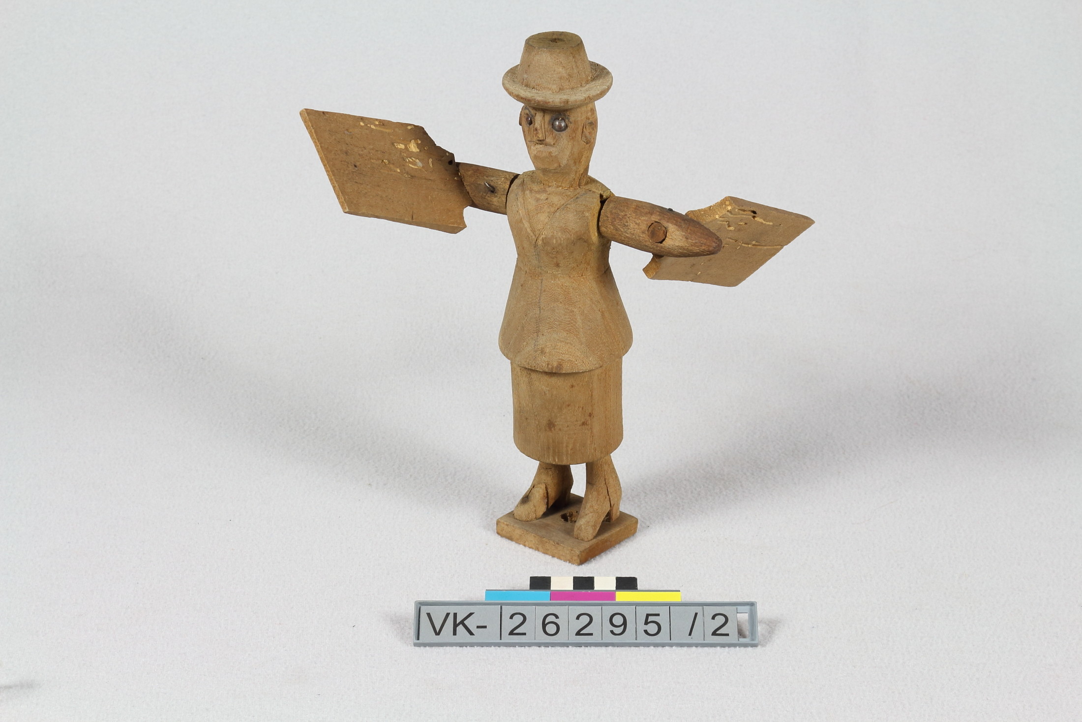 Figur, weiblich, mit beweglichen Armen, daran je ein Flügel.