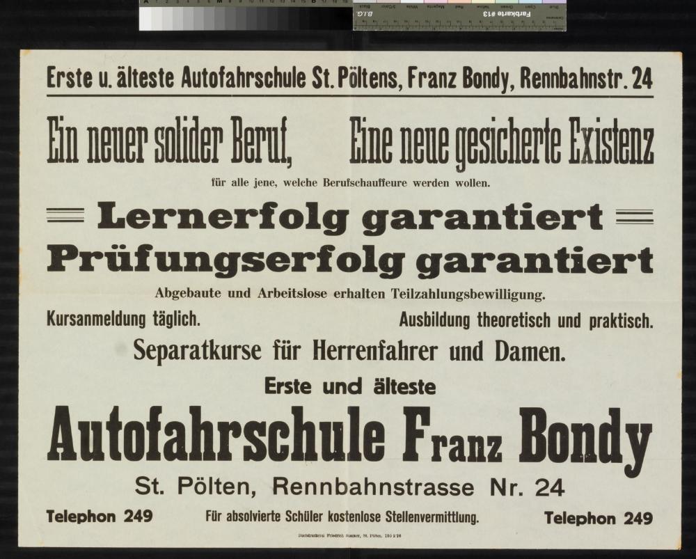 Erste u. älteste Autofahrschule St. Pöltens, Franz Bondy, Rennbahnstr. 24