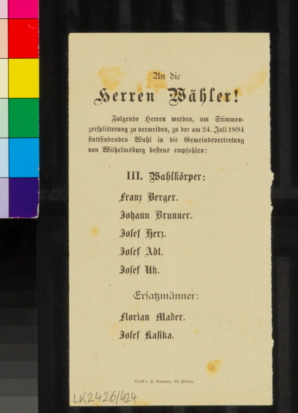 Ankündigung, III. Wahlkörper Wilhelmsburg, 24. Juli 1894.