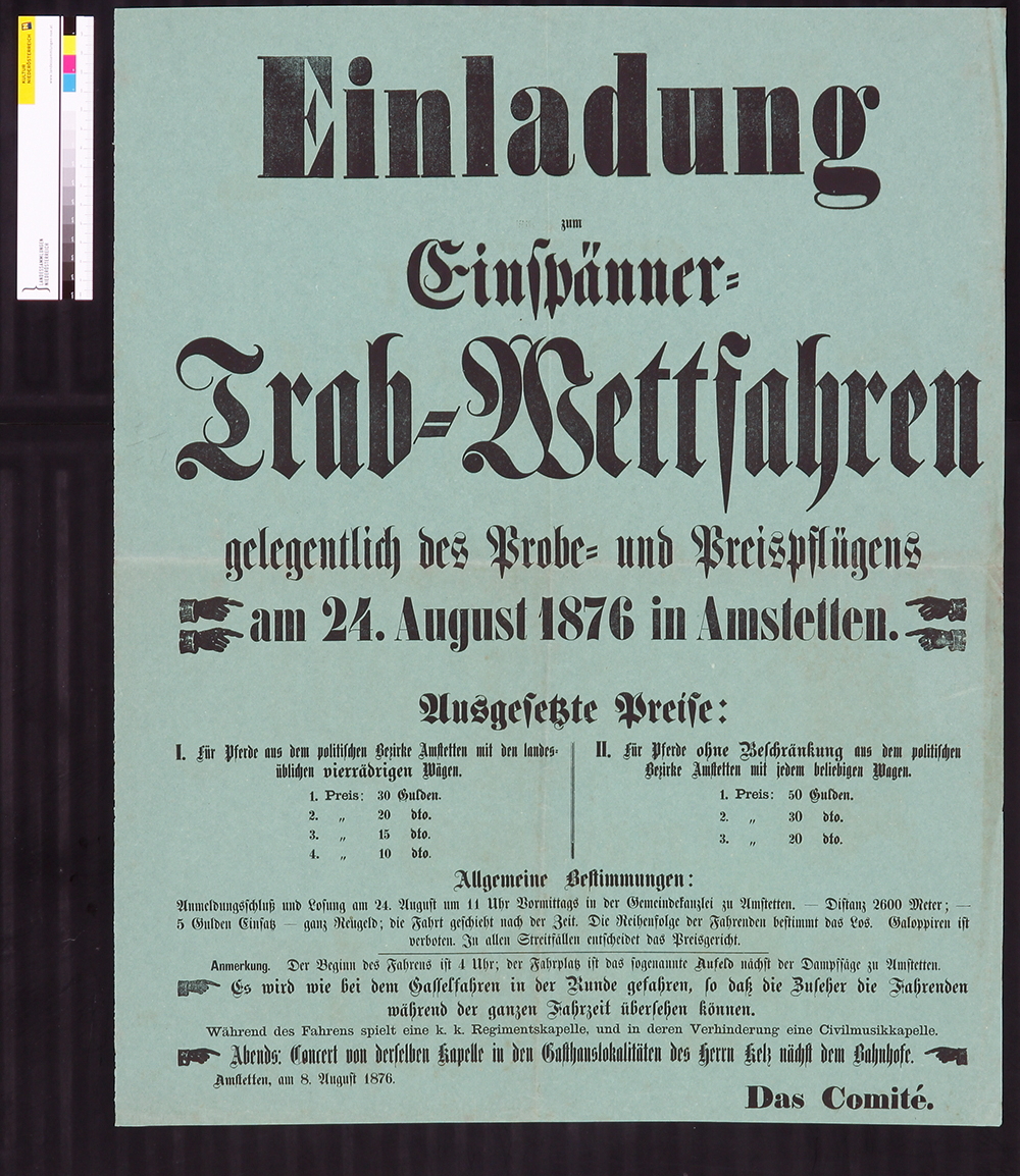 Einladung, Einspänner-Trabwettfahren Amstetten, 24. August 1876.